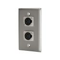 The Horizon WP1043 is a stainless steel single-gang wall plate with (2) Neutrix Female XLR connectors without locking tabs.