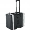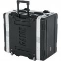 The Gator Cases GRR-6PL-US Powered Roller Rack Case is a high-density military grade lightweight polyethylene case with 6U rack space and 18.75" rackable depth. The case has front and rear rack rails and threaded field replaceable 7.0mm zinc plated steel rack rails. It features locking front and rear lids and heavy-duty twist latches. The case can be transported by comfortable recessed side handles, a rugged pull-out handle, and recessed wheels.